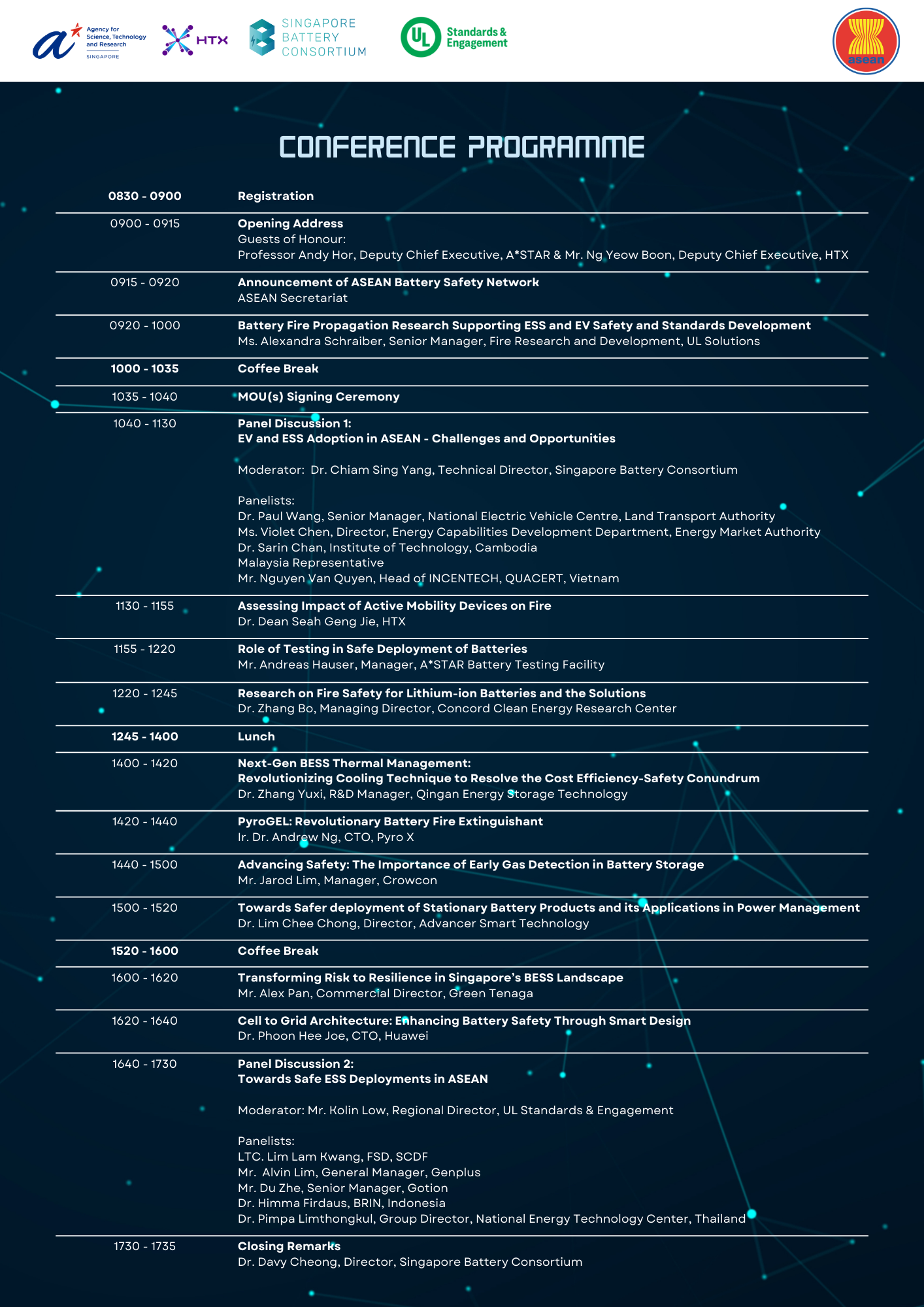 Organized by the ASEAN Battery Safety Network (under the ASEAN Committee on Science, Technology & Innovation) and co-organized with the Singapore Battery Consortium & UL Standards & Engagement, this is your chance to be at the forefront of battery safety and innovation in the region.
